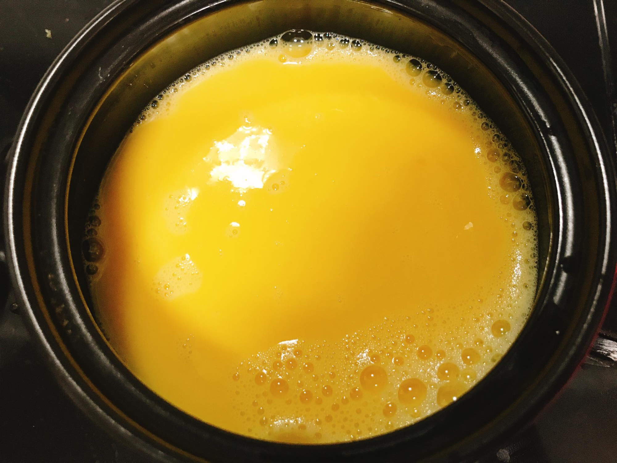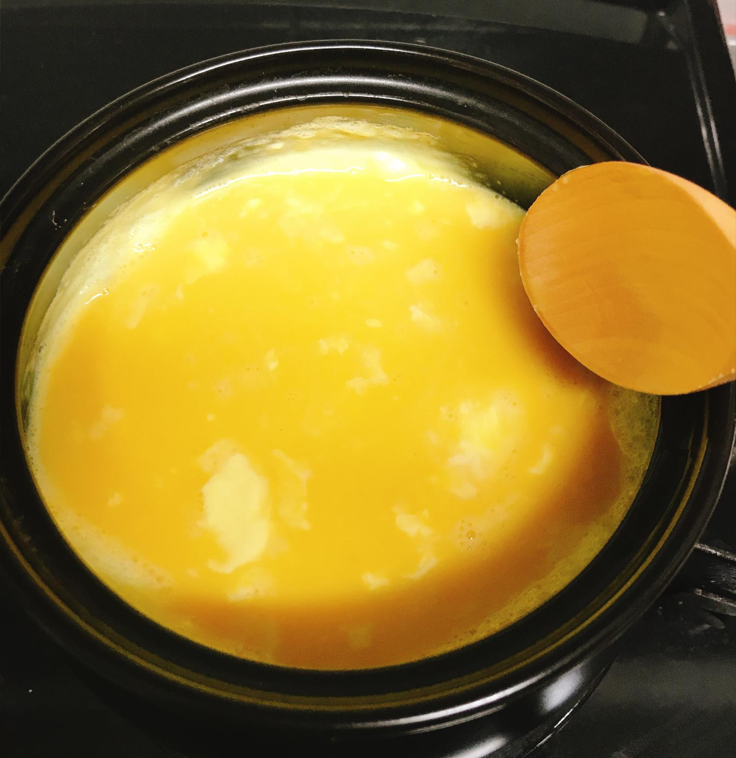 뚝배기에 계란 3개를 넣고, 잘 저어줍니다.